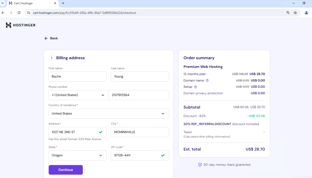 Once you’ve created your account, you’ll be prompted to fill in your billing information, including your name, mobile number, country, and address. After entering all the required details, click on the Continue button.